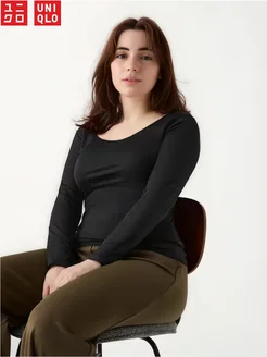 Heattech U-Neck T-Shirt Sleeves Лонгслив 09 Black