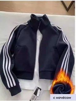кофта на молнии с начёсом с полосками на рукавах y2k