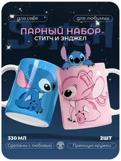 Парные кружки с принтом Стич и Ангел для парня и девушки