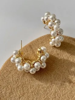 Серьги кольца с искусственным жемчугом бижутерия