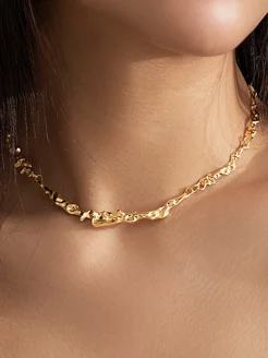 Колье цепочка на шею мятое золотистое чокер