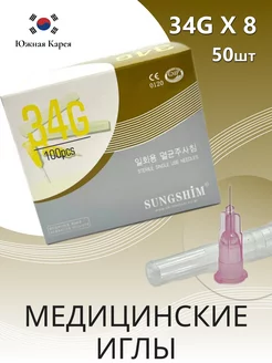 Медицинские иглы Инъекционные 34G*8 mm 50 шт