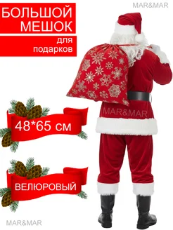 Мешок Деда мороза, тканевый, подарочная новогодняя упаковка