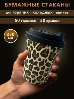 Одноразовые стаканы бумажные с принтом Леопард с крышками