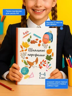 Папка портфолио для школьника на кольцах А4
