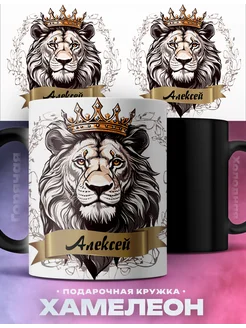 Подарок мужчине кружка хамелеон Алексей царь, лев