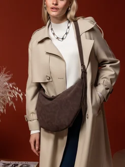 Сумка через плечо хобо замшевая коричневая