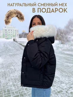 Куртка с белым мехом, Пуховик короткий оверсайз