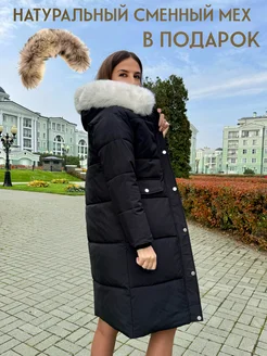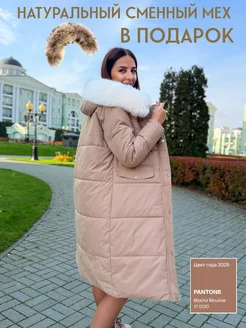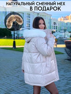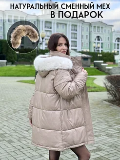 Куртка пуховик длинная с белым мехом