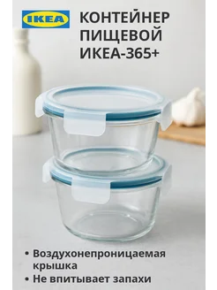 Контейнер пищевой - 365+, 14 см, круглый, стекло, 2 шт