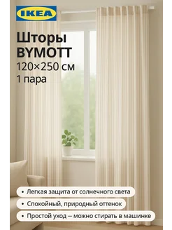 Шторы BYMOTT, бело-бежевые в полоску, 120х250см, 1 пара