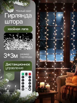 Новогодняя гирлянда штора хвойная лапа мишура 3х3