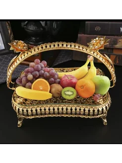 Фруктовница металлическая со стеклянным блюдом с ручкой