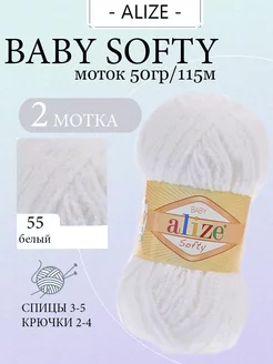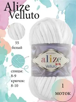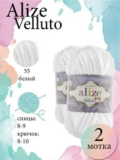 Пряжа амигуруми Ализе Velluto 55 белый 2 мотка