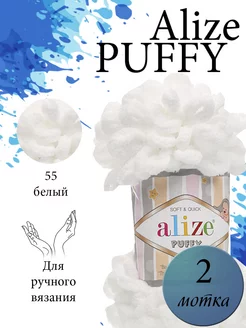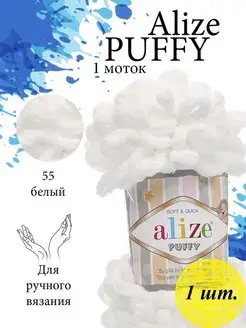 Пряжа PUFFY Ализе Пуффи Петельки 55 белый 1 моток