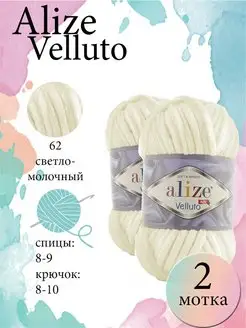 Пряжа амигуруми Ализе Velluto 62 молочный 2 мотка
