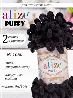 Пряжа Ализе PUFFY Петельки 1060 черная 2 мотка