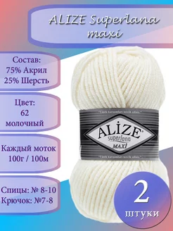 Пряжа полушерстяная Ализе Superlana Maxi молочный 2 мотка