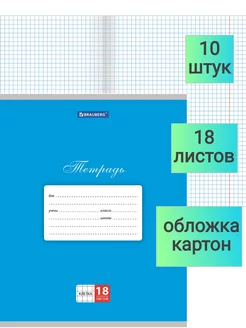 Тетрадь в клетку для школы 18 листов обложка картон синяя