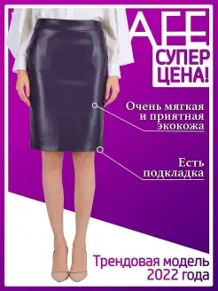Юбка женская кожаная карандаш теплая экокожа офисная кожзам