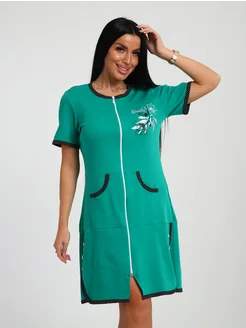 Халат домашний на молнии хлопок с коротким рукавом