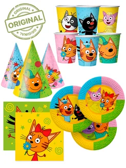 Одноразовая посуда для праздника бумажная Три Кота на 6 пер