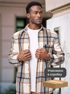 Рубашка теплая в клетку оверсайз с длинным рукавом
