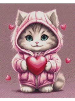Алмазная мозаика без подрамника 40х50 Котик с сердечком