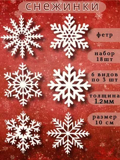 Снежинки из фетра новогодние белые 10 см 36 шт