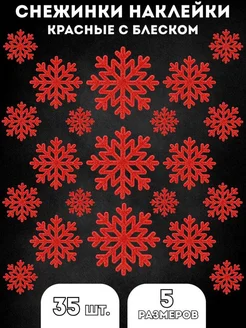 Наклейки снежинки на окна и стены из фоамирана 35 шт
