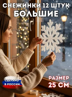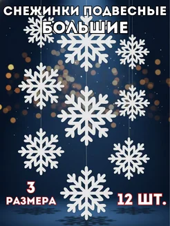 Снежинки подвесные большие 25 см, 20 см, 16 см, набор 12 шт