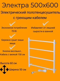 Полотенцесушитель электрический с кабелем 500х600 белый