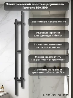 Электрический полотенцесушитель Гротекс 80х1100 Черный
