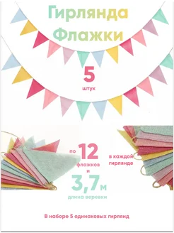 Флажки цветные гирлянда тканевая для улицы 5 штук