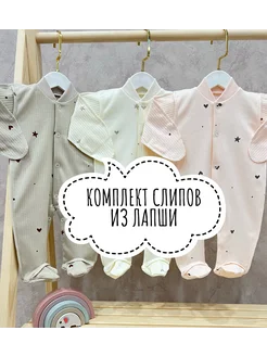 Муслиновый комбинезон слип для новорожденных комплект 3 шт