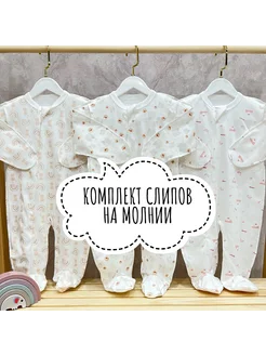 Комбинезон слип для новорожденных на молнии 3 шт