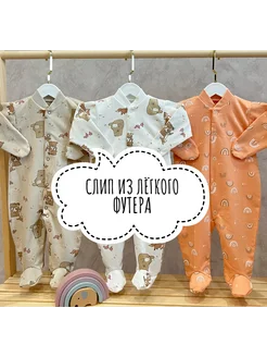 Комбинезон слип для новорожденных из лёгкого футера 3 шт