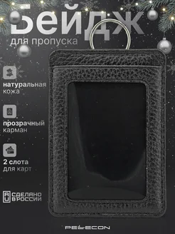 Чехол для пропуска из натуральной кожи с кольцом для ключей