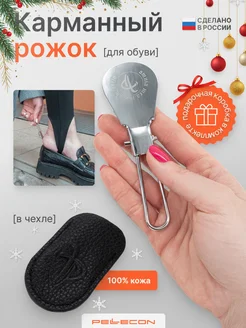 Маленький складной рожок для обуви в кожаном чехле