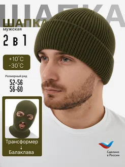Шапка-балаклава вязаная зимняя теплая