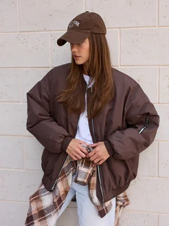Бомбер коричневый утепленный оверсайз куртка осенняя