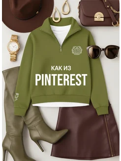 Свитшот полузамок оверсайз без начеса с вышивкой