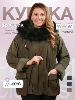 Куртка зимняя короткая капюшоном и натуральным мехом