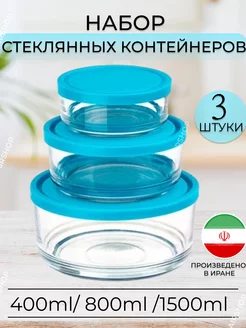 Стеклянный контейнер для еды герметичный защелками 3шт