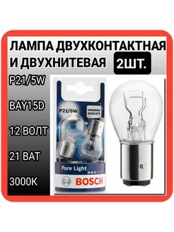 Лампа двухконтактная и двухнитевая P21 5W 12V BAY15D
