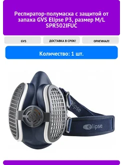 Респиратор-полумаска с защитой от запаха Elipse P3, раз