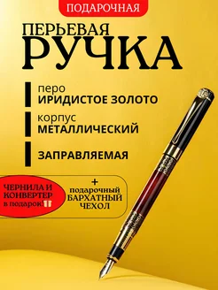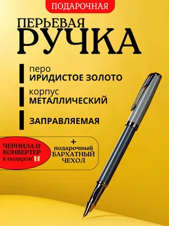 Ручка перьевая с чернилами и картриджами металлическая