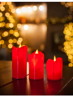 Свечи светодиодные красные набор на батарейках, 3 штуки