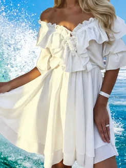 Платье женское летнее короткое легкое с воланами и рюшами