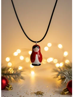 Кулон Матрешка красная на шнурке